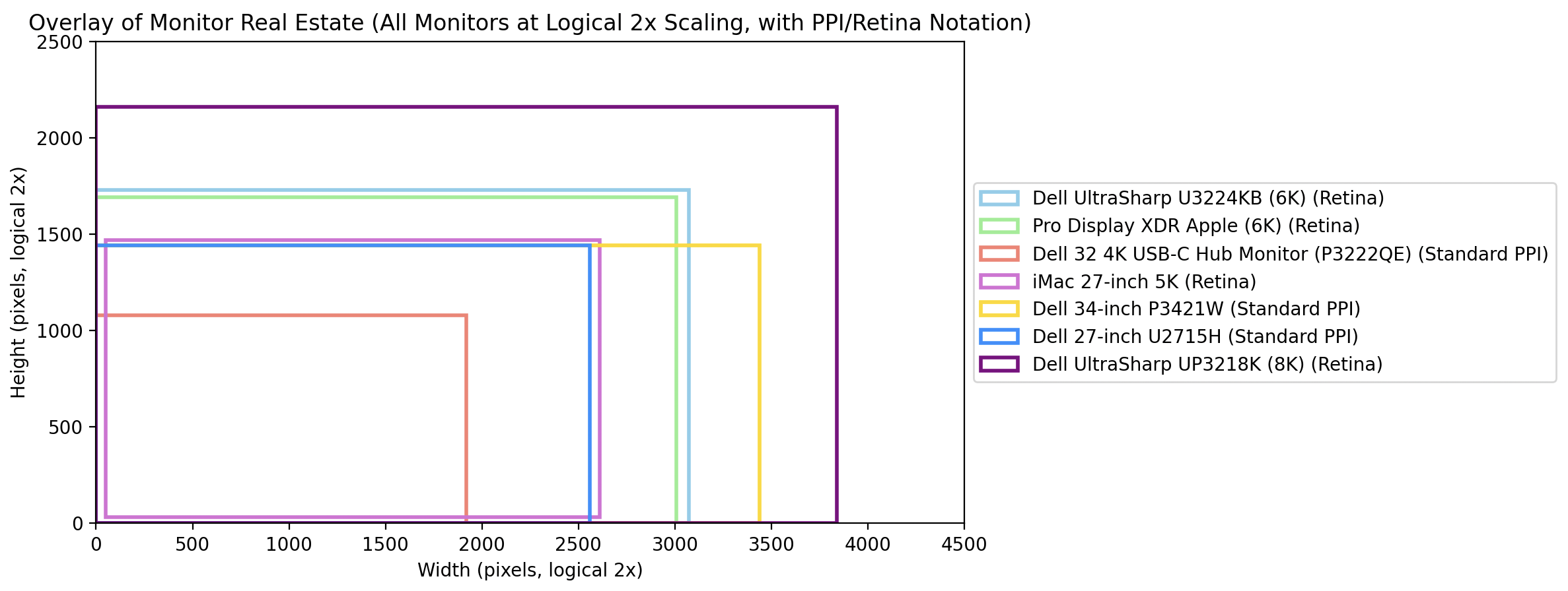 - 5K 27”: Would provide Retina-sharp text but not much more workspace. This option is getting less and less appealing.